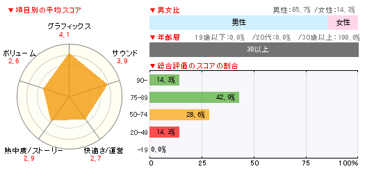 グラフィックス サウンド 快適さ/運営 熱中度/ストーリー ボリューム 3 4 2 2 3 -