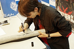石渡氏はサインの書き方について来場者の要望をしっかり聞いていたほか,サイン用の品やゲームなどについてさまざまな会話を交わすなど,フレンドリーな対応。来場者も満足そうな笑顔を見せていた。