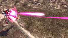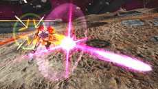 チャージ射撃はためればためるほどタキオンスライサーの出力が上がり攻撃範囲が拡大される |