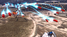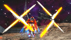 ボタン入力+サブ射撃でファンネルを射出。追従中は画面から消え、攻撃時に再度出現する強力なファンネルだ |