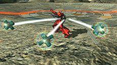 2枚のブーメランで敵機の左右を狙い、2枚同時に投擲するサブ射撃。敵機の左右への移動に対して驚異的な性能を誇る |