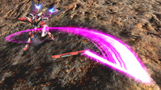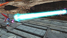 高エネルギー長射程ビーム砲 からレーザーを発射する格闘チャージ。照射時間が長いうえ、レバー入力で曲げることができる |