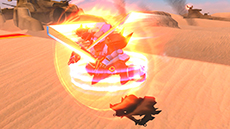 相手の射撃を防ぎながら接近するニュートラル特殊射撃。一気に相手との距離を詰めることができるぞ |