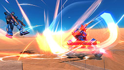 特殊格闘の特殊移動は一定距離を移動する。移動中に射撃や格闘もできる本機の目玉とも言える強力な技だ |