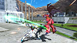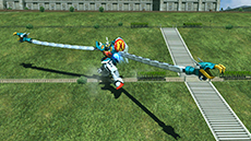 後格闘:上空へ飛び上がり、トリケロス改で斬り下ろす