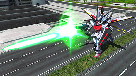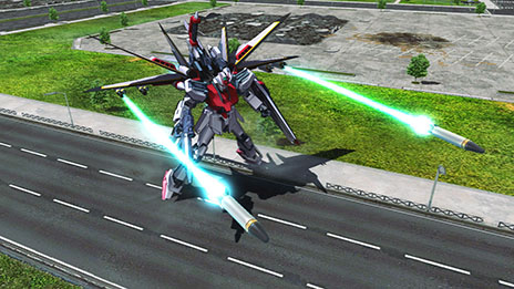 威力が高いビームランチャー、弾速が速いレールガン、連射可能で当てやすい小型ミサイルなど、中距離で有効な武装を多く持つ。それだけではなく、特殊格闘で呼び出すムラサメの援護も加えれば、射撃戦においての存在感がさらに増す。