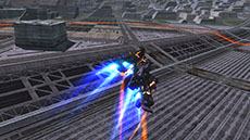 アームド・アーマーDEを背中に装備し、敵に向かって高速移動を行う。