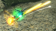 主翼に装備されている小型ミサイルによる特殊射撃攻撃を行う。メイン射撃を押し続ける事でミサイルの連射が可能。