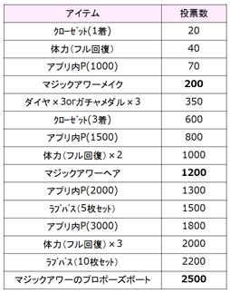 投票特典は、各タイトルの合計投票数に応じて受け取ることができます。