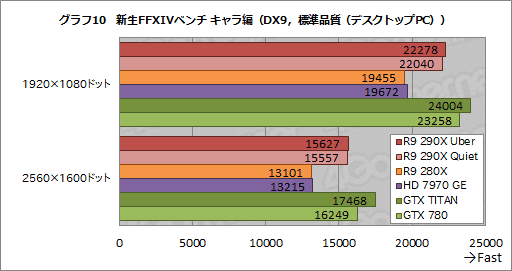 スクウェア・エニックスの示す指標では,スコア7000以上で一番上の評価「非常に快適」を得られるのだが,R9 290X Quietが2560×1600ドットでその指標を軽々と上回ってきた点も要チェックだ。