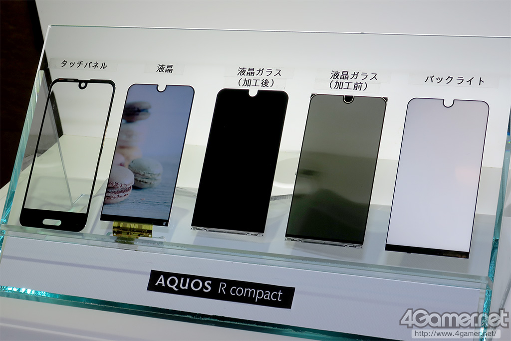 シャープ,コンパクトタイプの新型スマホ「AQUOS R Compact」を発表。画面の一部にフロントカメラが食い込んだようなデザインに