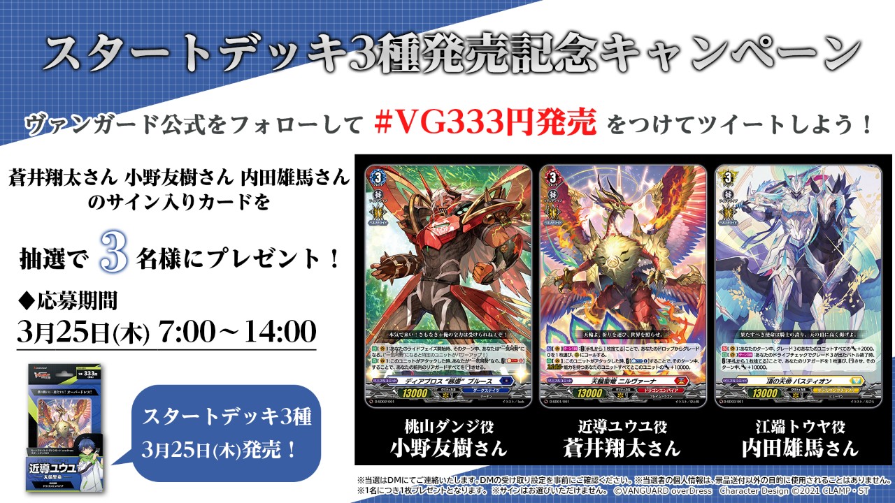 「カードファイト!! ヴァンガード overDress」のスタートデッキ3種が333円で登場