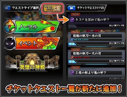 • 画像ギャラリー No.001 | 「モンスト」3月6日にアップデートを実施。クエストクリア時のパーティ履歴の保存や「助っ人」選択後のデッキ編成,クエスト一覧から神化素材の逆引きが可能に