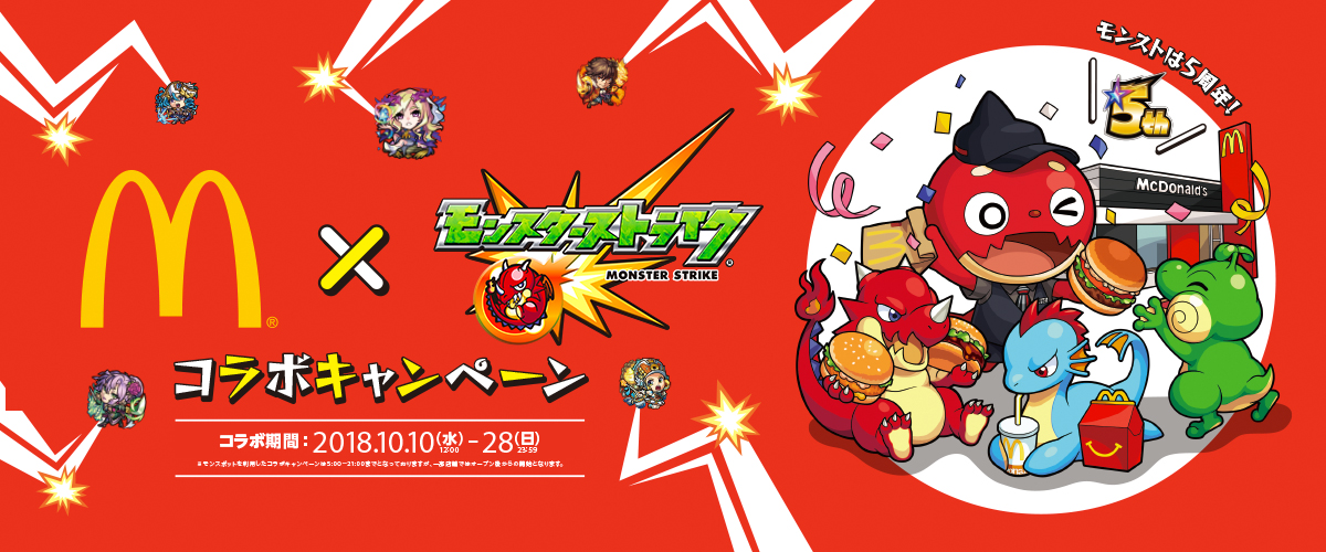 「モンスターストライク」,マクドナルドとコラボを10月10日より実施。限定キャラやクエストも登場
