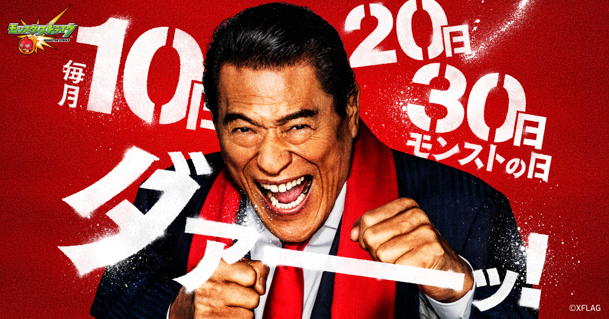 「モンスト」,期間限定キャラ「アントニオ猪木」が登場。「闘魂注入月間!燃えるモンストの日」を開催