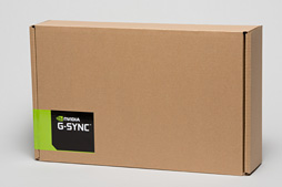 入手したG-SYNC DIY KITの製品ボックスはいわゆる茶箱で,正面向かって左下のロゴ入りシールが唯一の目印となる。