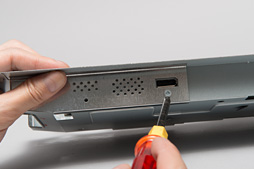 ![]() 最初の2か所を取っかかりにして,全周にわたってツメを外していけば,裏蓋は外れる。この作業が,全工程中,最も時間がかかったところだ |