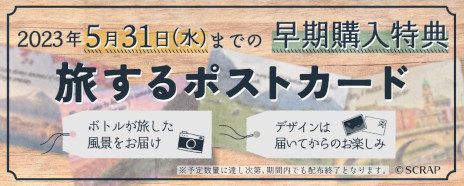 2023年5月31日(水)までに購入すると、メッセージボトルが旅した国々のポストカードがついてくる早期購入特典もご用意。メッセージボトルが巡った各国の思い出を一緒に振り返ることができ、物語をより彩ってくれる特典となっています。
