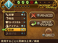 「防御」のコマンドは、1ターン中に何度も使用可能。相手の強攻撃に備えて重ね掛けすれば、受けるダメージを大きく軽減できる。