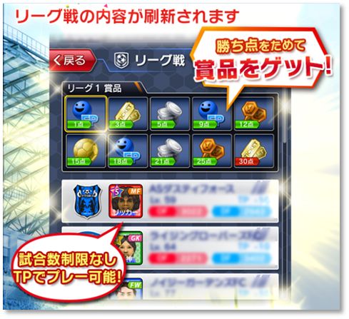 「サカつくシュート!」,リーグ戦を手軽に楽しめる“新リーグ”が実装