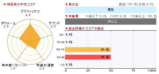 グラフィックス サウンド 快適さ/運営 熱中度/ストーリー ボリューム 4 1 2 1 2 -