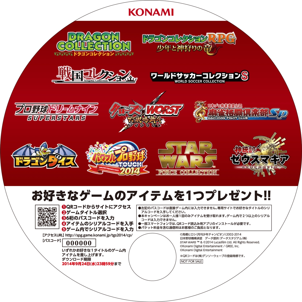 KONAMI,人気アプリのゲーム内アイテムを入手できるコード付きうちわをTGS 2014会場で配布