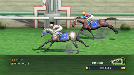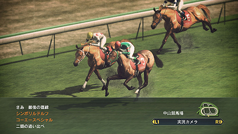 実在のスターホースとのレースシーンです。GI7勝の皇帝シンボリルドルフです |