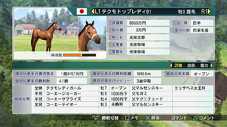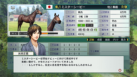 誕生年や寿命などは史実どおりだが、レースの結果はプレイヤー次第。オリジナルの馬で歴代の名馬に挑戦したい人にオススメ。