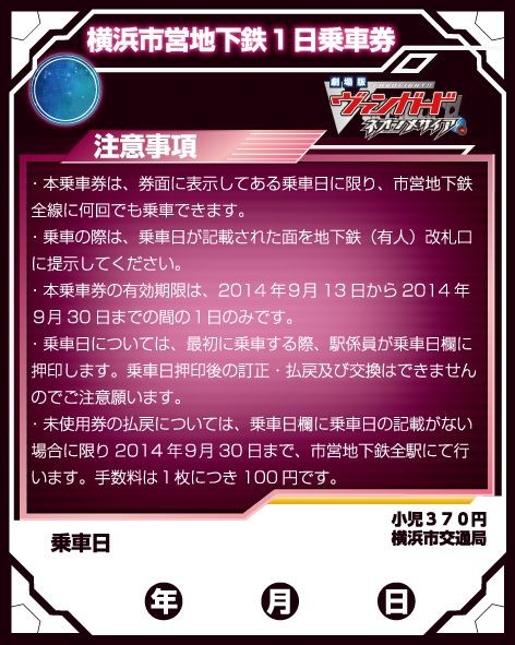 「劇場版カードファイト!! ヴァンガード」と横浜市交通局のコラボ乗車券が発売
