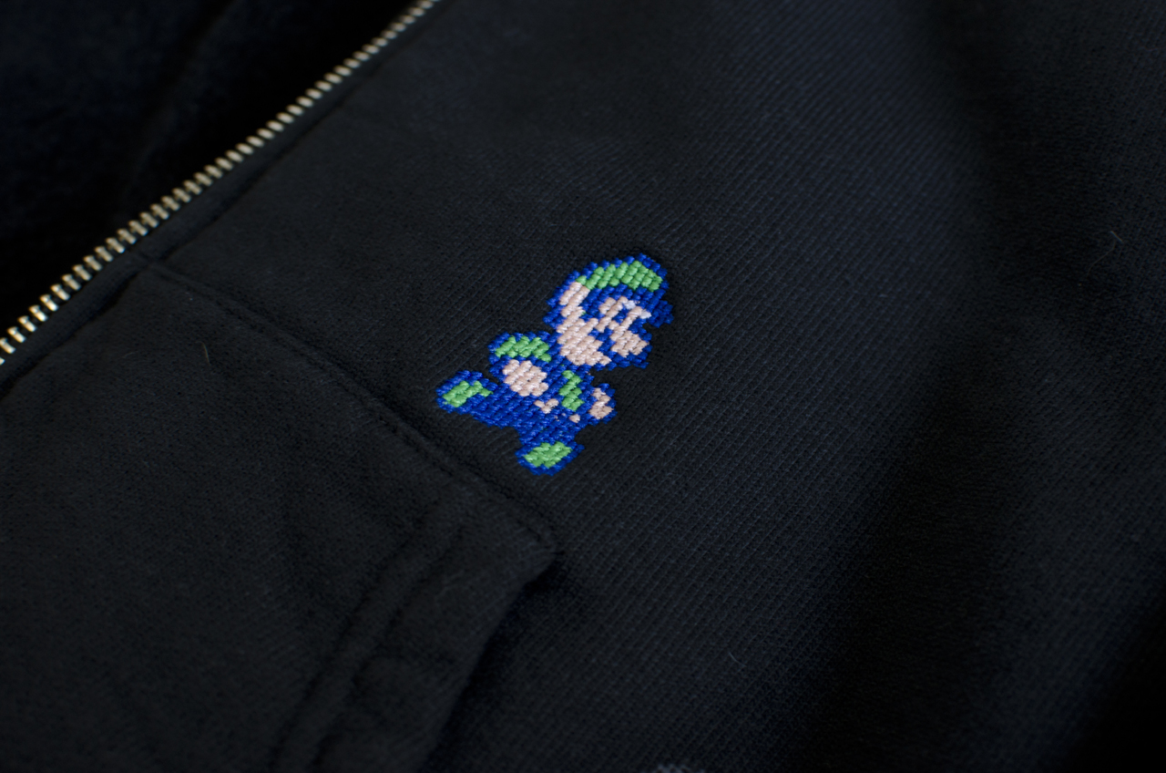 「メトロイド」「スーパーマリオUSA」(ルイージ)をモチーフにしたジップアップパーカーが「THE KING OF GAMES」ブランドの新作として登場