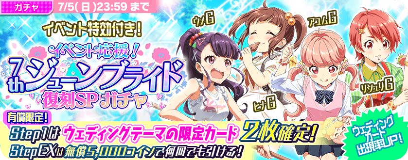 「Tokyo 7th シスターズ」で「イベント応援!7th ジューンブライド復刻SPガチャ」が開催