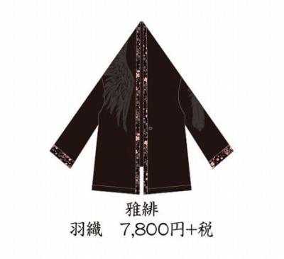 雅緋の羽織は、雅緋の忍術で出てくる鴉の羽と翼をイメージした羽織になっています。少しメンズタッチな雅緋をイメージして前身頃を少し長くして、ストールを首にかけてたらしている感じのデザインになりました。