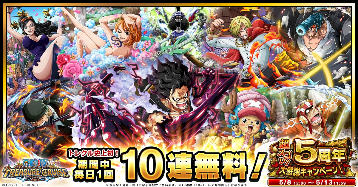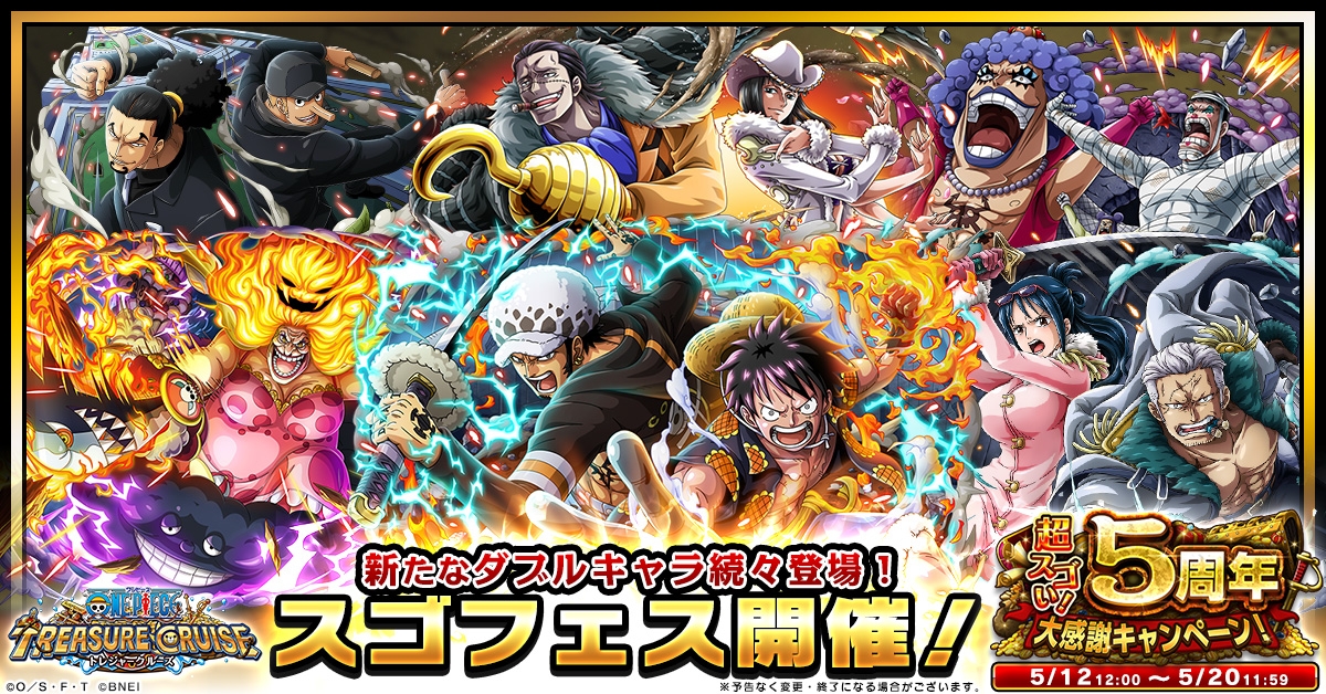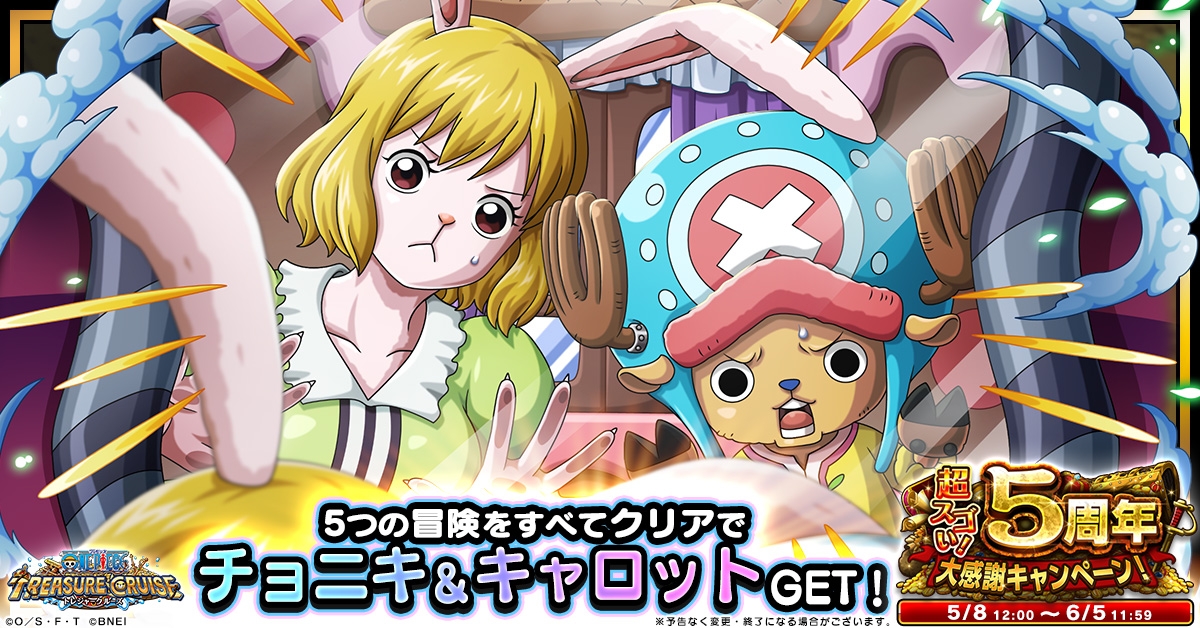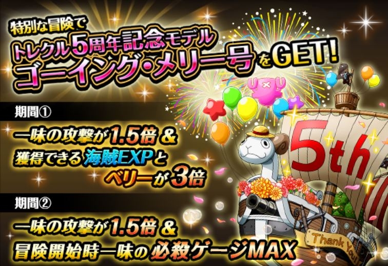 「ONE PIECE トレジャークルーズ」,超スゴい!5周年大感謝キャンペーンが本日より開催