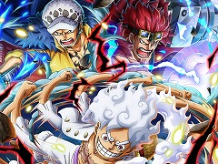 バンダイナムコエンターテインメントは2023年8月6日,スマートフォンアプリ「ONE PIECE トレジャークルーズ」で,ギア5姿のルフィが新登場する「天上決戦超スゴフェス!! 太陽の神編」を開始した。そのほかに,超スゴい「ルフィ」「ロー」「キッド」などが排出される「1回限り! 超スゴフェス!!」も開催中だ。