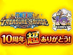 バンダイナムコエンターテインメントは2024年5月12日,「ONE PIECE トレジャークルーズ」で,サービス10周年を記念した「10th Anniv. トレクル10周年超ありがとう!!超スゴフェス!!」を開始した。今回の超スゴフェスでは,限定キャラクターの「ルフィ」「シャンクス」「エース」が新登場する。