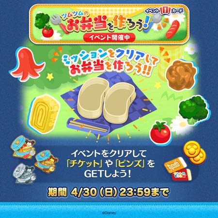 ◆ミッションクリアしてツムツムのかわいいお弁当を完成させる新イベント「ツムツムのお弁当を作ろう!」開催!
