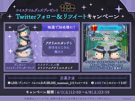 『ディズニー ツイステッドワンダーランド』の新ツム登場を記念して、抽選で30名様にオクタヴィネル寮のオリジナルアクリルスタンドが当たるTwitterフォロー&リツイートキャンペーンを実施します。