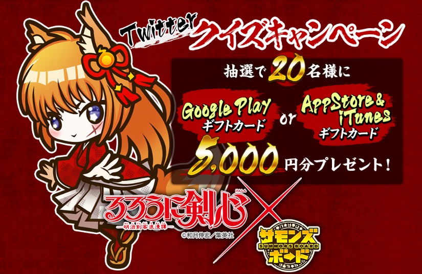 「サモンズボード」,漫画「るろうに剣心 -明治剣客浪漫譚-」とのコラボがスタート