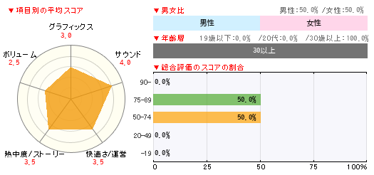 グラフィックス サウンド 快適さ/運営 熱中度/ストーリー ボリューム 3 3 4 4 2 -