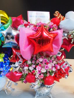 永塚さんが移動した先には,High×Jokerのメンバー達が! しかも,それぞれが演じるアイドル達が担当する楽器を手にし,いざ演奏が始まると全員が実際に演奏し始めました。14曲めは,生演奏で盛り上がった「Sunset★Colors」。アニメ第10話では,High×Jokerのメンバーが通う高校の文化祭で歌ったこの曲ですが,スクリーンではその時のシーンと同じように風船がいっぱい映し出されたりして,すっごく良かったです。