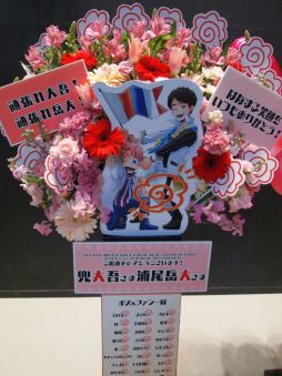 続いて9曲めは,兜 大吾のソロ曲「HANAMARU LIFE」。タイトル通り,元気いっぱいな楽曲をタオルを回しながら歌う浦尾さんの姿を見ていると,こちらも元気になれました! あと,浦尾さんは笑顔が本当に素敵です。スクリーンに映し出された花丸が満載の映像には,大吾の出身地である広島にまつわるイラストも盛り沢山! 広島弁がいっぱい使われた楽曲に相応しい映像でした。この曲でも浦尾さんは,歌詞をアレンジ! 「太陽がみんなを照らす」の部分を「仙台を照らす」に変え歌うと,思わぬパフォーマンスに会場からは大きな歓声があがっていました。また,バックダンサーとして野上さんと千葉さんがタオルを回しながら登場し,さすがのタオル捌きで会場を沸かせました。