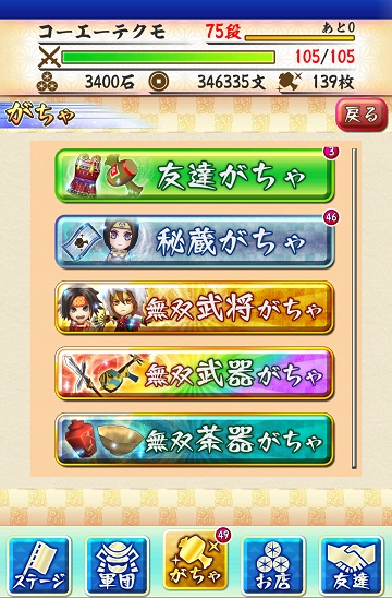 「戦国無双シュート」,武将強化の新アイテム「万能属性武器」が登場