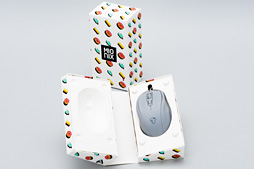 たとえば普通のゲーム用マウスだったら,化粧箱なんてとくに見向きもせず捨てちゃいますよね。でも,カラバリ版CASTORなら,フライドポテトやアイスクリームといった,ポップな絵柄が目に入ります。「なんで食べ物?」と疑問に思うかもしれませんけど,そういった疑問が生じること自体が面白くないですか?