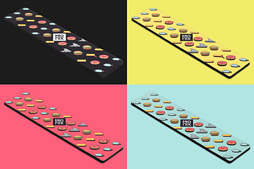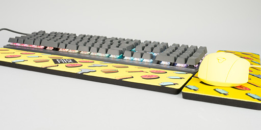 ところで今回は黄色と,朱色に近い赤色,水色,灰色です。WEIは基本が灰色キーキャプで交換用が黄,赤,水。細長いパームレスト兼マウスパッド「Long Pad」も,灰色ではなく黒だということを除けば同じ4色展開です。今後もこのカラーリングを続けていくという理解でいいのでしょうか。