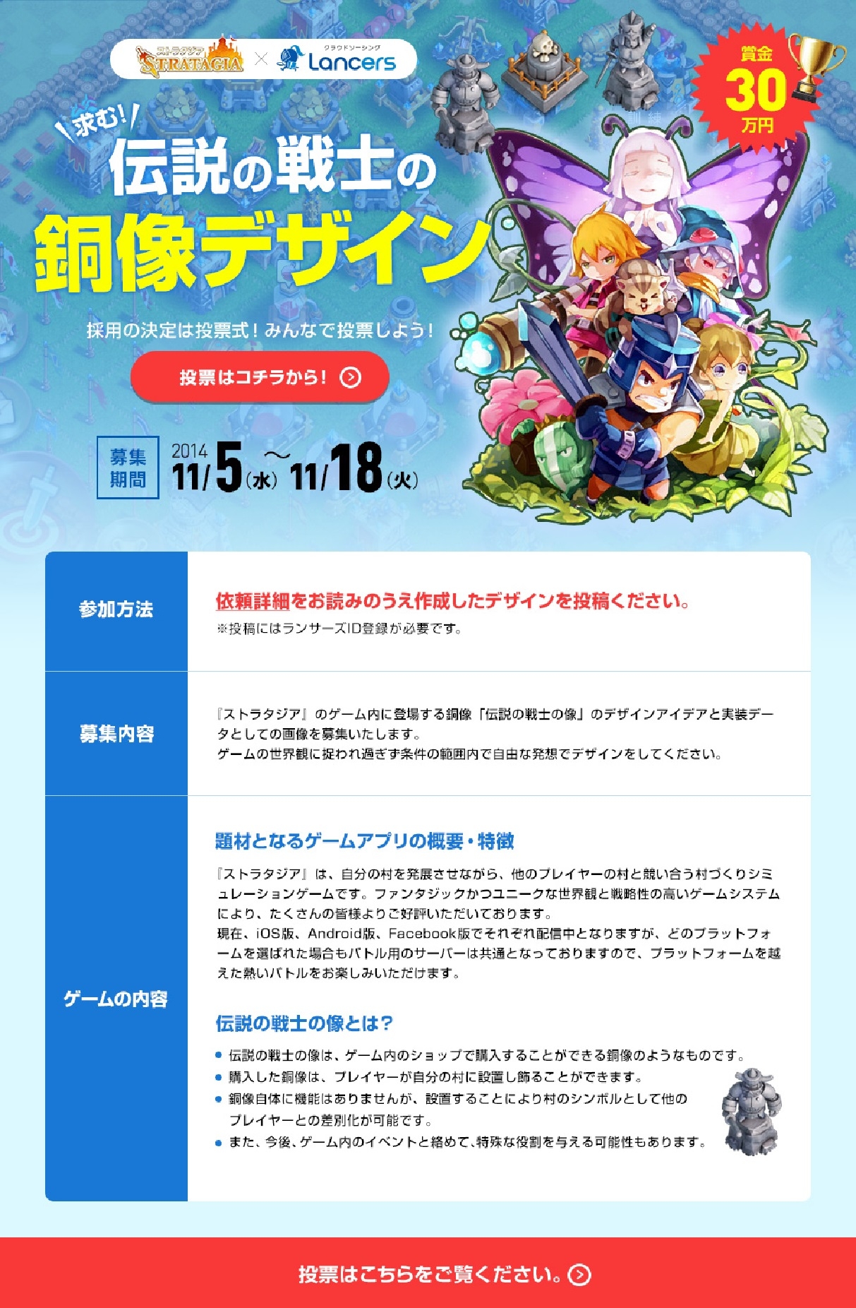 「ストラタジア」が「ランサーズ」とコラボ。銅像のデザインコンテストを実施