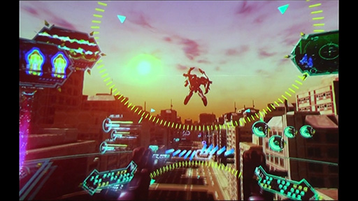 「体感合体『アクエリオン・EVOL』」(以下,体感合体)はゲームではなく,VRの映像を楽しむ「VRアニメ」とでもいったデモだ。プレイヤーが両手に持ったPlayStation Moveを動かすシーンは一部あるが,非常にシンプルなものだった。