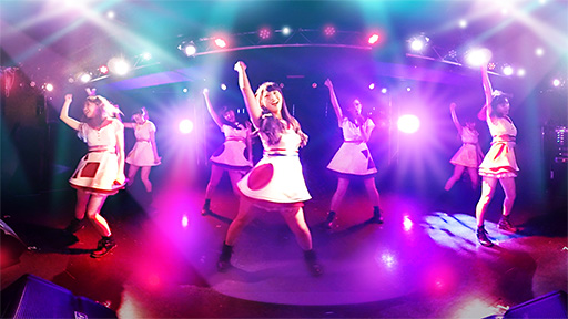ガンガン☆ダンスのほうは,アイドルグループ「OS☆U」の歌うステージが舞台となるのだが,歌が始まる前にOS☆Uメンバーがプレイヤーを囲んで話しかけるシーン――もちろん,360度見回せる――があるなど,ただカラオケを楽しむだけでない演出が用意されているといった具合だ。