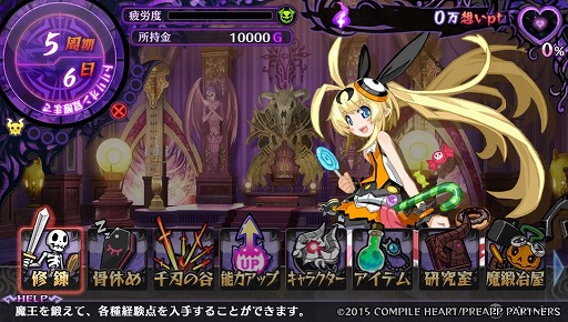 ゲームの基本的な流れは,トリリオンが休眠している限られた期間で魔王を育成し,次にトリリオンが目覚めた時に討伐に向かわせるというもの。トリリオンが目覚めるまでの期間は画面左上に表示されており,「修錬」もしくは「骨休め」を行うことで1日ずつ経過していく。