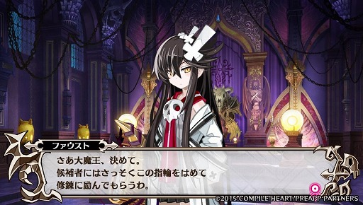 しかし,死んでしまった魔王を生き返らせる方法が,たった1つだけある。育成パートでは,交流やアイテムのプレゼントなどで魔王の親密度がアップしていき,それによってさまざまなイベントが発生するのだが,6人の魔王全員が死亡したとき,親密度がMAXになった魔王がいると,その中から1人だけを選んで蘇らせることができるのだ。