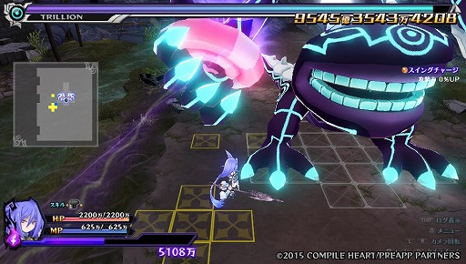 トリリオンの攻撃は非常に広範囲かつ高威力だが,トリリオンの行動はすべて発動予告を伴っており,使用してくるスキルやその効果範囲などが事前に表示される。そのため,いかに相手の攻撃をかわしつつ接近するかが勝負のカギだ。トリリオンの行動によっては,一歩ずつ歩いていては避けられないような攻撃がくる場合もあるが,そんなときは使用すると前進/後退が可能な移動系のスキルを使って緊急回避しよう。